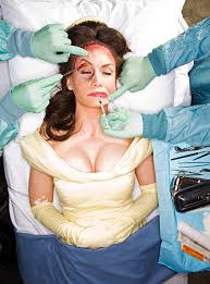 In this picture it shows from the beaty and the beast the beauty getting surgery. I also can think by looking at this picture that shes in the hospital because she got hit by the beauty. I see two hand meaning that two doctors are helping.